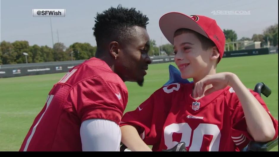 Marquise Goodwin hat ein Herz für Kinder. Dies hat er nach einem Training der 49ers unter Beweis gestellt, als ein Junge im Rollstuhl auf den Rasen gebracht wurde.