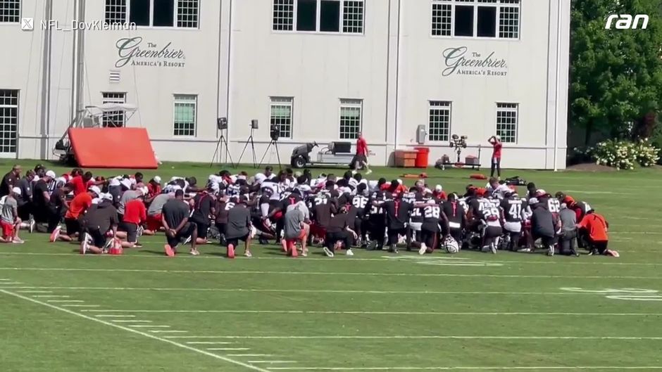 Nachdem sich D'Onta Foreman im Training verletzt hat, beten seine Mitspieler für ihn.