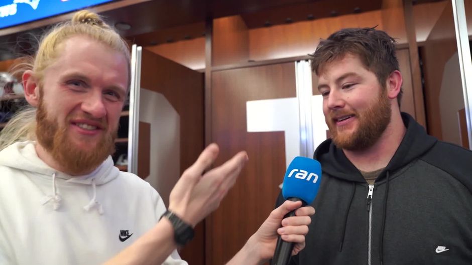 ...und plötzlich dreht Pats-O-Liner Joe Thuney den Spieß um und befragt den überraschten Icke zur deutschen "Todesgruppe" bei der Fußball-EM 2020.