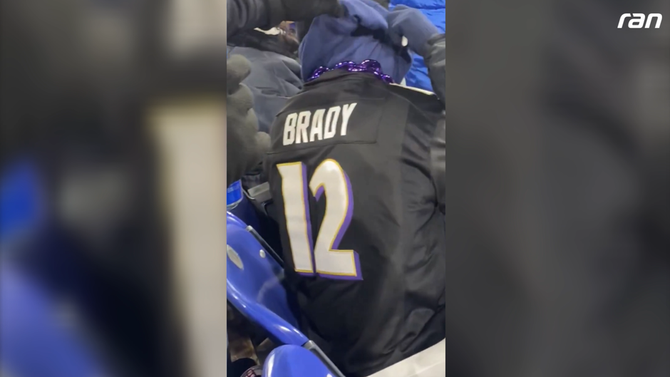 Das haben die Ravens-Fans auch noch nicht gesehen. Ein Fan taucht in einem Brady-Trikot von den Ravens auf.