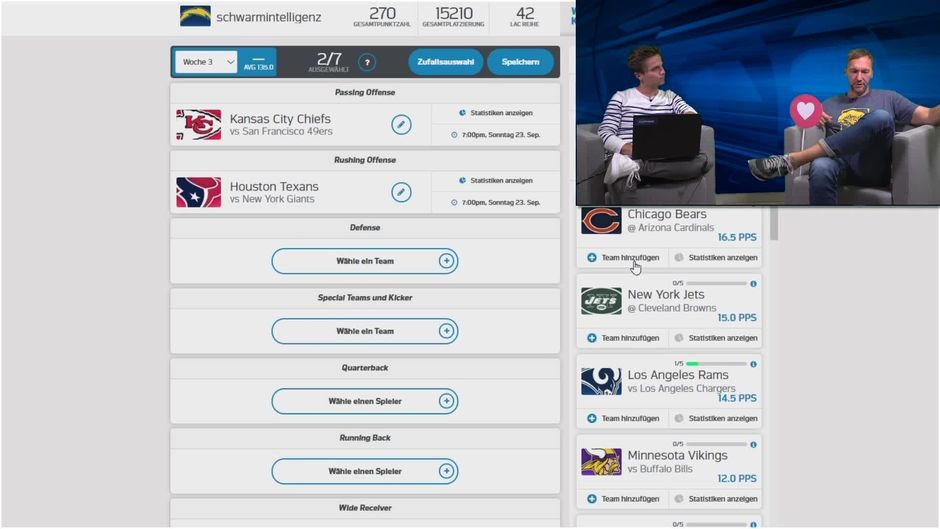 Volker Schenk war in der dritten Ausgabe der Webshow „Fantasy Manager – die ranNFL Webshow“ zu Gast und hat sein Team für die dritte NFL-Woche aufgestellt.