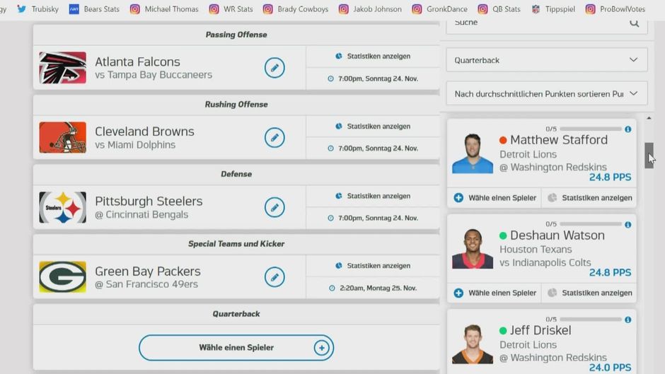 Week 12 steht an und Volker Schenk aktualisiert sein Fantasy Team auf ran.de - wir zeigen euch seine Aufstellung.
