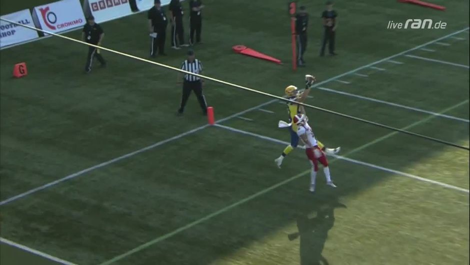 Ein Spielzug aus dem Lehrbuch. Mit einem schönen Catch in der Endzone baut Schweden die Führung gegen Dänemark aus - es sollte die Vorentscheidung sein. Die Football-EM vom 29. Juli bis zum 4. August live auf ran.de.