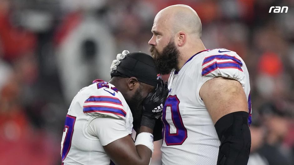 Bills-Safety Damar Hamlin kollabiert auf dem Spielfeld und wird nach langer Behandlung mit Reanimationsübungen im kritischen Zustand ins Krankenhaus gefahren. Die NFL- und Sport-Welt zeigt sich geschockt und sendet Gebete.