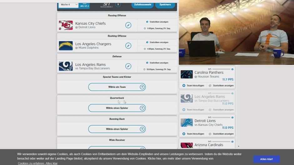 In unserem Fantasy Manager zeigt Volker Schenk während der Webshow, wen er in Week 4 aufstellen würde.
