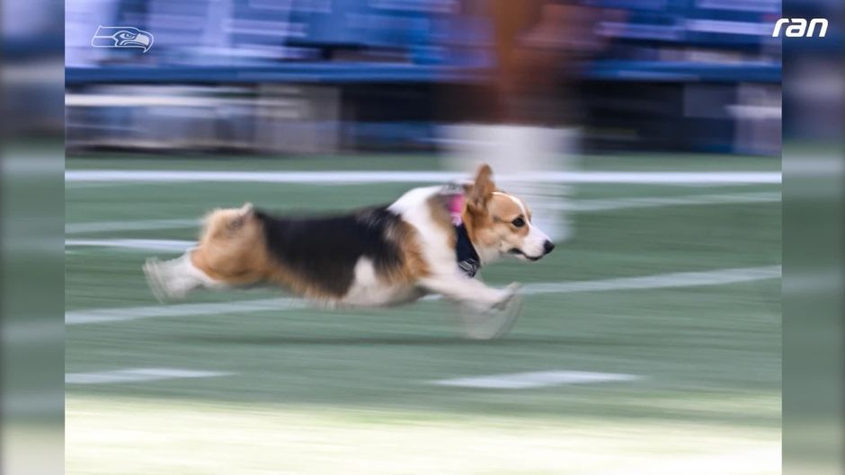 In der Halbzeit-Show im Spiel der Seattle Seahawks gegen die Atlanta Falcons büxt ein kleiner Vierbeiner aus. Der Hund rennt durchs Stadion sorgt für Erheiterung bei den Fans.