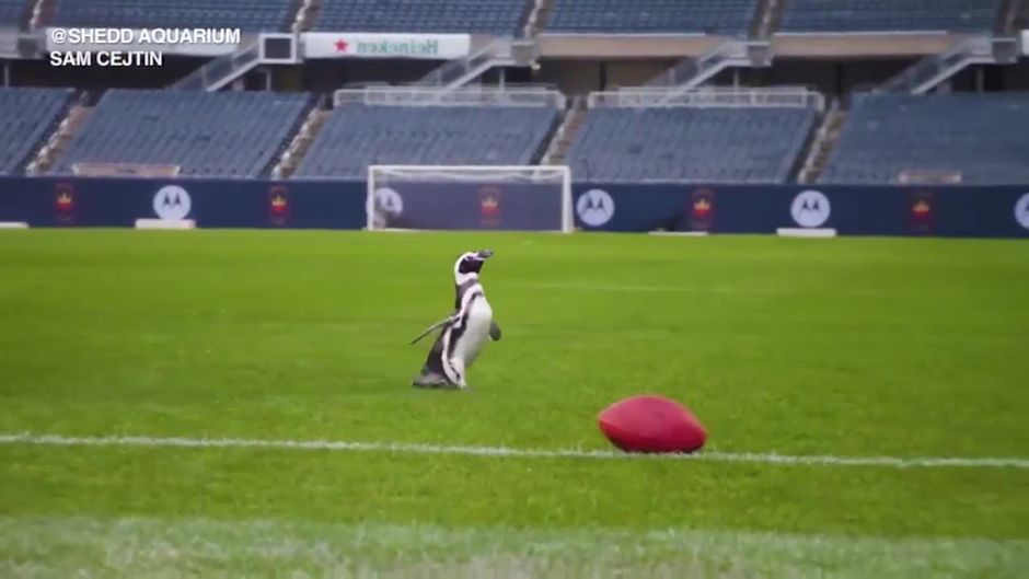 Nachdem wegen Covid-19-Restriktionen das Chicago-Shedd-Aquarium schließen muss, machen sich vier Pinguine auf dem Weg in die Spielstätte der Chicago Bears.