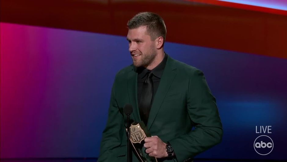 TJ. Watt gewinnt den Award "AR defensive player of the year" und kann es kaum glauben. Mit bewegenden Worten richtet er sich an seine ganze Familie und an seine Teamkollegen aus Pittsburgh.