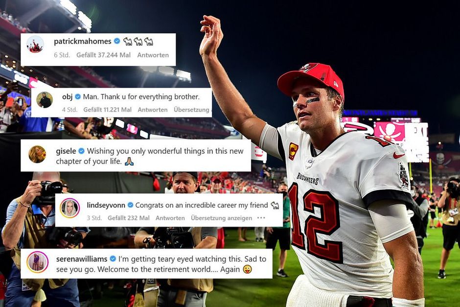 Nachdem Tom Brady sein endgültiges Karriereende verkündete, melden sich zahlreiche Sportgrößen zu Wort und verabschieden den GOAT in den Ruhestand. Dazu gehören Harry Kane, Serena Williams und auch seine Ex-Frau Gisele Bündchen.