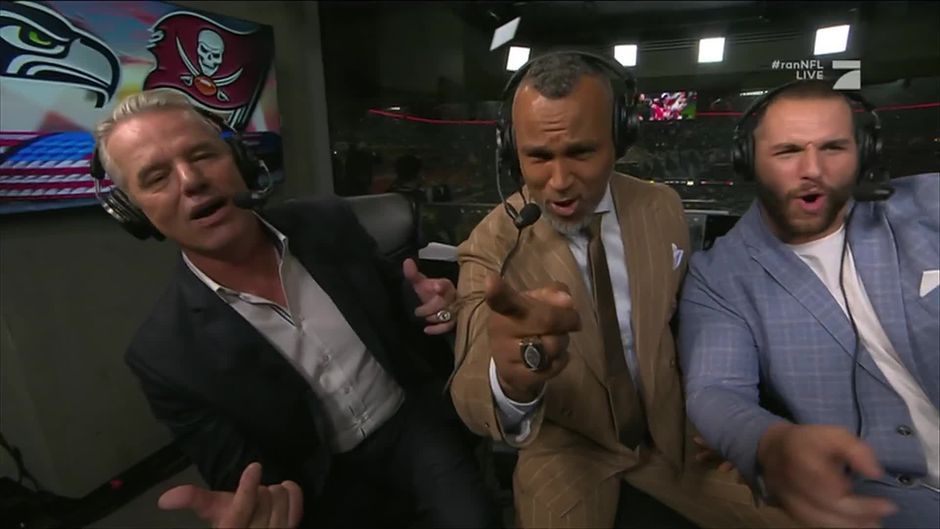 Noch eine halbe Stunde nach dem Ende des ersten NFL-Spiels in Deutschlands ist die Atmosphäre in der Allianz Arena sensationell. Auch die ran-Kommentatoren lassen sich anstecken.