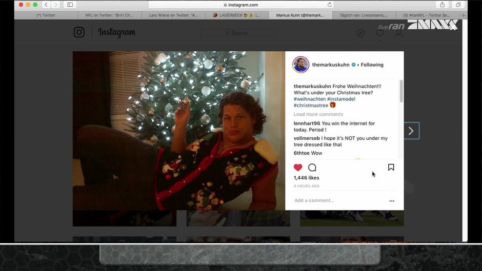 Auch an Heiligabend zeigt sich die ranNFL-Community im Internet von ihrer besten Seite. Vor allem ranNFL-Experte Markus Kuhn sorgt mit einem Weihnachts-Tweet für Gelächter. Wo würde Kuhn ausgeschnitten denn sonst noch hinpassen? Werdet kreativ!