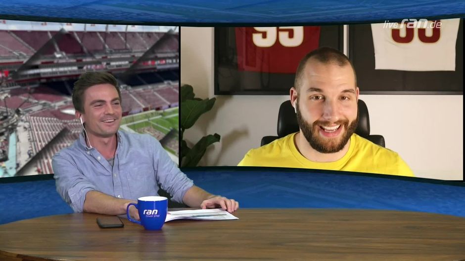 Björn Werner schwelgt ein bisschen in Super-Bowl-Erinnerungen und lobt Max dann als besten Feldreporter, den er je gesehen hat.