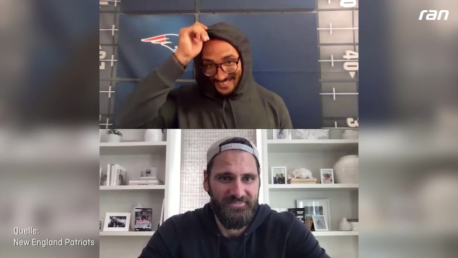 Jakob Johnson musste nach einer verlorenen Wette gegen einen Teamkollegen seine Dreadlocks färben. Im Video überrascht er Sebastian Vollmer mit seiner neuen Haarpracht. Quelle: Instagram / @PatriotsDeutschland