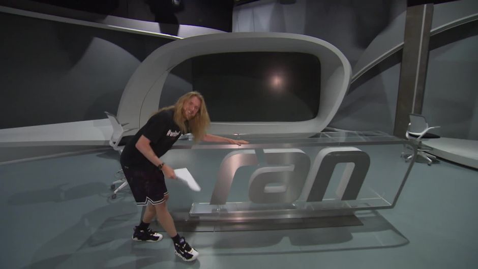 ran-Moderator Icke zeigt das ran-Studio für die kommende College-Football- und NFL-Saison.