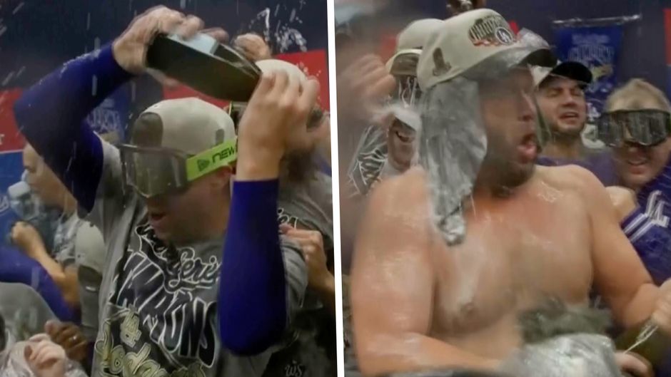 Party-Alarm bei den Los Angeles Dodgers: Nach dem MLB-Titel gegen die Toronto Blue Jays spritzt der Champagner.