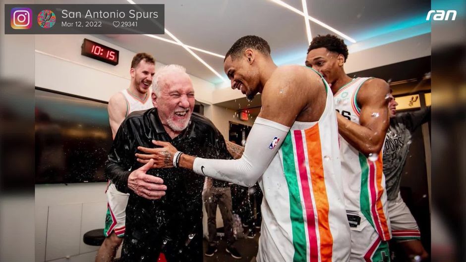Gregg Popovich hat mit 1336 Siegen NBA-Geschichte geschrieben. Von seinem Team wurde der 73-Jährige dafür in der Kabine frenetisch gefeiert.
