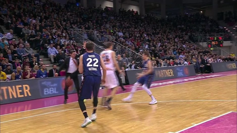Play of the Week 2: ratiopharm Ulm-Coach Thorsten Leibenath blockt von der Seitenlinie aus. Basketball live auf ProSieben MAXX - jeden Mittwoch ab 19:45 Uhr