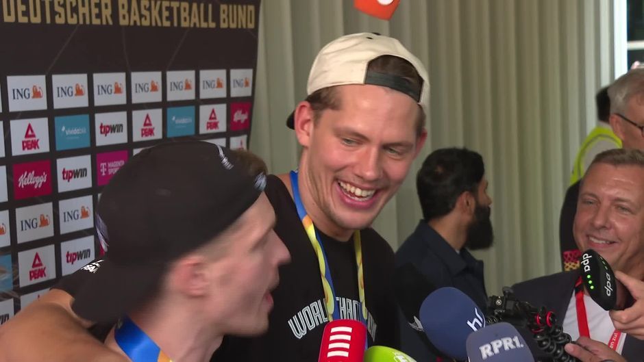 Die beiden Basketball-Weltmeister Andy Obst und Franz Wagner sprechen über den WM-Triumph und die Feierlichkeiten danach.