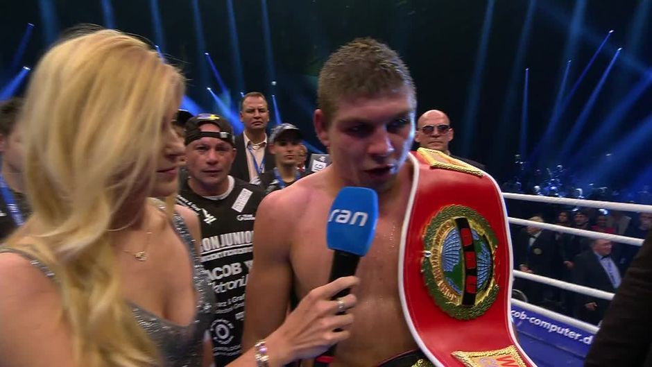 Vincent Feigenbutz nach dem Kampf im Interview bei Andrea Kaiser. Er hält das Urteil für gerechtfertigt und bietet De Carolis ein Rematch an.