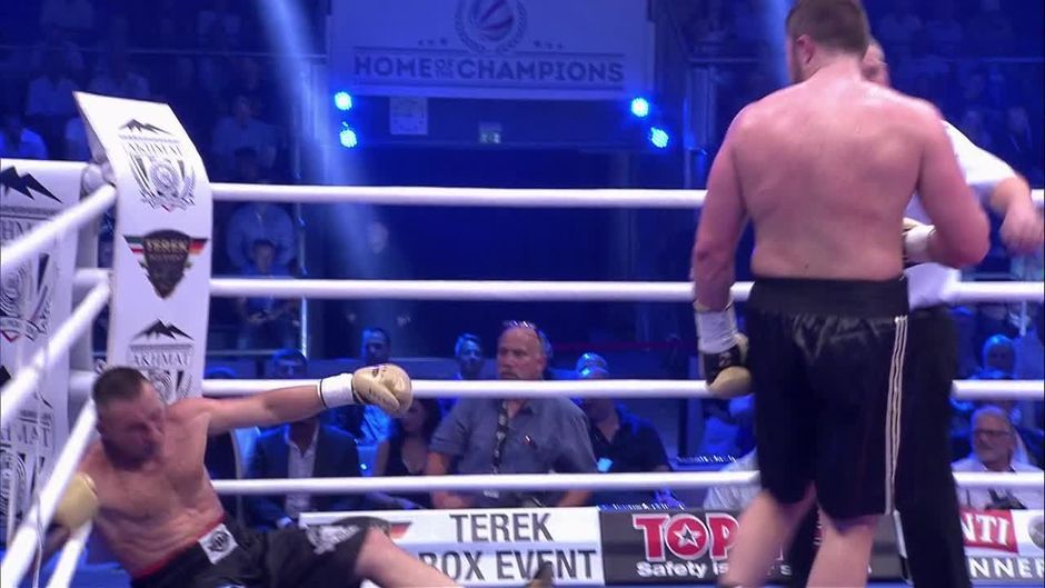 Edmund Gerber schlägt seinen Gegner Lubos Suda in der sechsten Runde K.o..