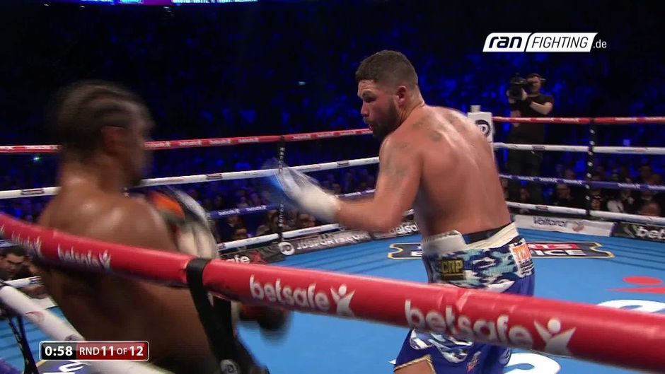 Davis Haye vs. Tony Bellew: Schwer angeschlagen wirft Hayes Ecke gegen Kampfende das Handtuch. Tony Bellew nach elf spannenden Runden. Den Fight gibt es relive auf ranFIGHTING.de