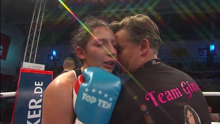 SES Fight Night in Potsdam, WBO, WIBF, WBF World Championship, Super-Federgewicht (bis 58,967 kg): Die sechste und letzte Runde des Kampfes zwischen Ramona Kühne (Berlin) und Gina Chamie aus Ungarn. Kommentator: Matthias Preuss