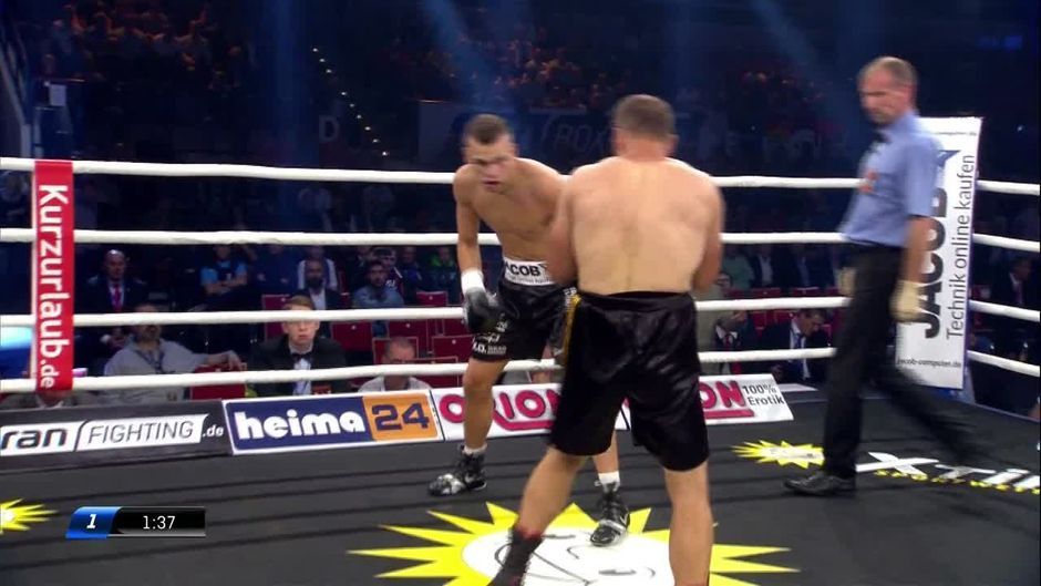 Der Löwe aus der Pfalz macht heute kurzen Prozess. Direkt in der ersten Runde schickt er seinen Gegner auf die Bretter.