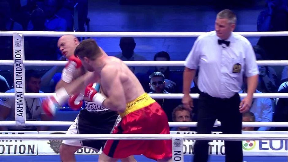 Alexander Dimitrenko macht mit seinem Gegener Zoltan Csala kurzen Prozess und beendet den Kampf in der zweiten Runden durch einen sehenswerten K.o..