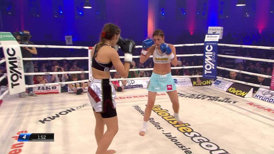 Die achtmalige Weltmeisterin Marie Lang trifft auf die Marokkanerin Rachida Bouhout. Sehen Sie hier Runde 4 aus dem Postpalast München.