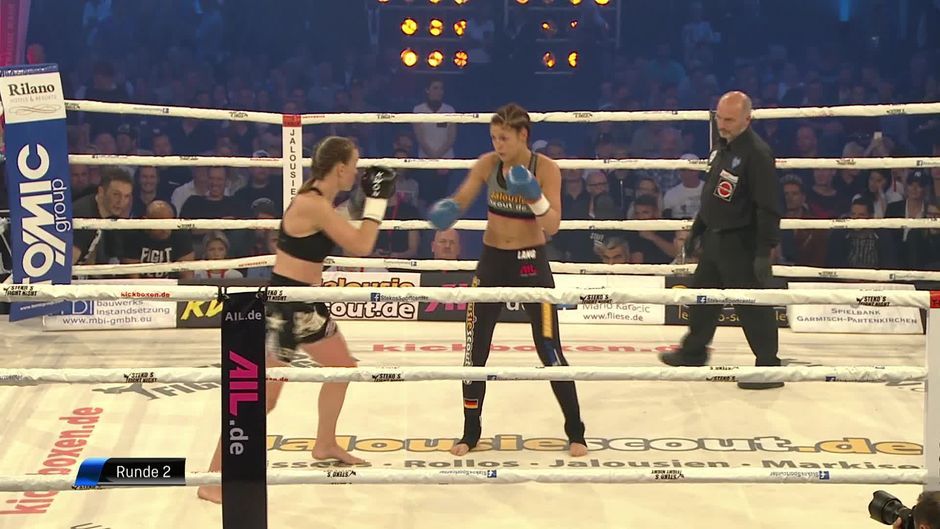 Die zweite Runde des WKU-WM-Kampfes im Kickboxen zwischen Marie Lang und Pernille Schjonning.
