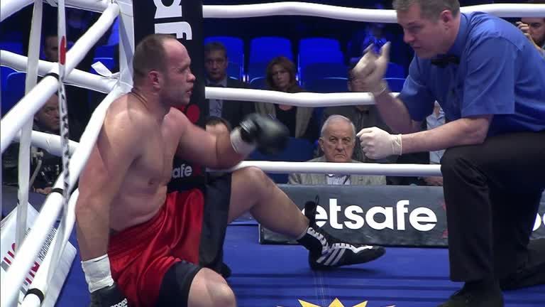 ran Boxen: Im Vorkampf Burak Sahin vs. Maksym Pediura schickt Sahin den Ukrainer zwei Mal zu Boden. Danach ist für Pediura Schluss.