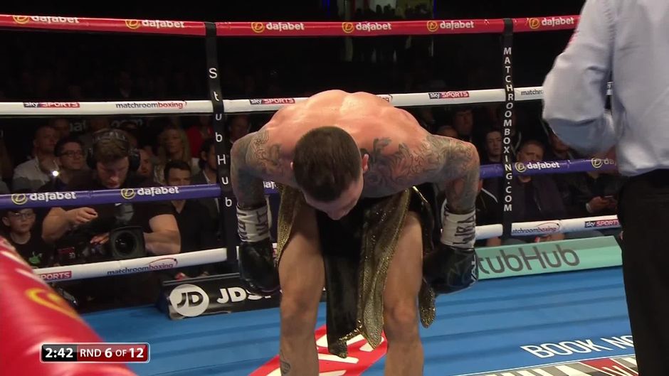Autsch! Nach dem Gong zu Runde sechs des Kampfes zwischen Martin Murray und Gabriel Rosado teilt Murray mächtig aus - wenn auch ungewollt. Rosado hat nach dem Tiefschlag mächtig zu pusten. Den Kampfabend gibt es komplett re-live auf ranFIGHTING.de.