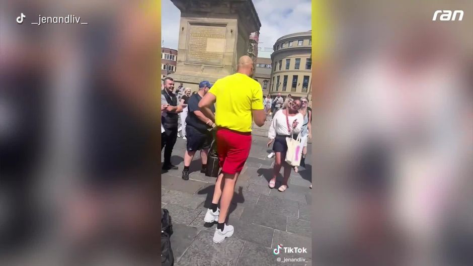 Als Tyson Fury an zwei Straßenmusikerinnen in Newcastle vorbei kam, schien ihm die Musik so zu gefallen, dass der "Gypsy King" stehen blieb und zu tanzen begann.