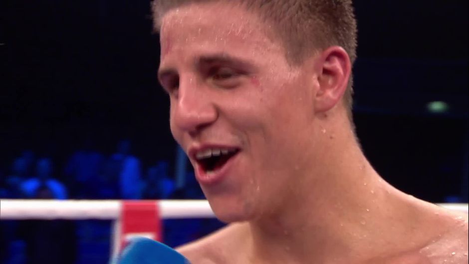 Sichtlich zufrieden und erleichtert zeigt sich Weltmeister Tyron Zeuge nach seinem Kampf gegen Paul Smith. Auch der Plan für den Rest des Abends steht schon: Bierchen, Freundin, Bett und Schlafen.
