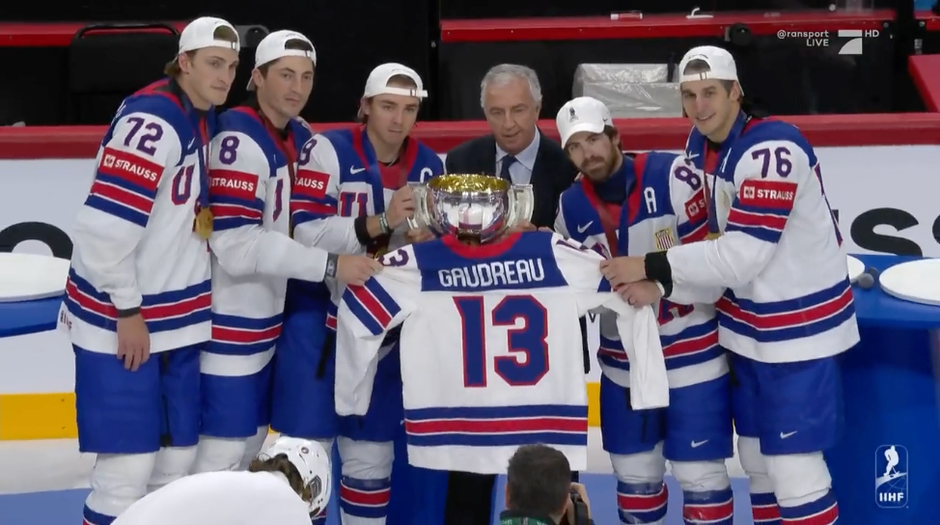 Die USA gedenkt bei der Pokalübergabe der Eishockey-WM dem im vergangenen Jahr verstorbenen Teamkollegen Johnny Gudreau mit einer emotionalen Geste.