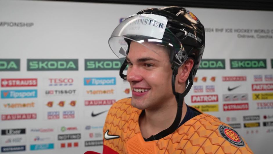 J.J. Peterka ist zufrieden nach dem 6:3-Sieg im letzten Gruppenspiel gegen Frankreich. Auf diesen Gegner hofft der NHL-Star im Viertelfinale.