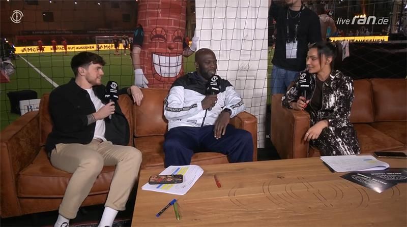 Plötzlich steht eine Tür hinter Hans Sarpei. Warum das Möbelstück so besonders ist und was bekannte Streamer damit zu tun haben, erklärt der Sportdirektor von Eintracht Spandau im Interview.