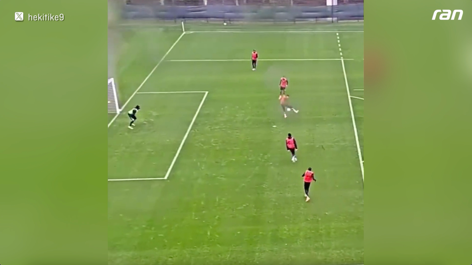 Hugo Ekitike gelingt im Training der französischen U21-Nationalmannschaft ein Traumtor, per Hacke.