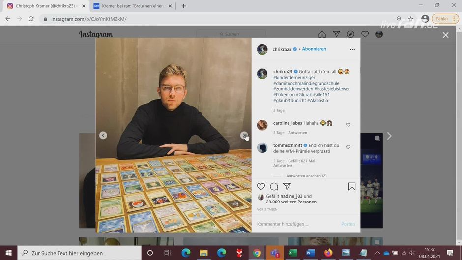 Borussia Mönchengladbachs Spieler Kramer zeigt auf Instagram seine beeindruckende Pokemon-Sammlung.