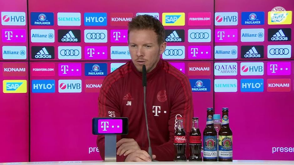 FCB-Trainer Julian Nagelsmann spricht über die aktuelle Corona-Situation in seinem Team und geht davon aus, dass das Spiel gegen Borussia Mönchengladbach stattfinden wird. SAT.1 und ran.de übertragen die Partie am Freitagabend live.