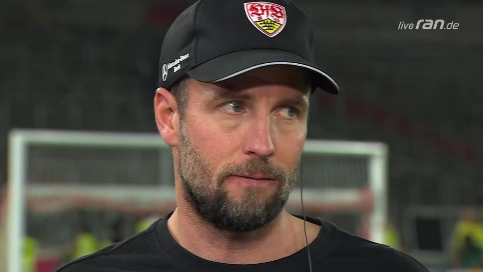 VfB-Trainer Sebastian Hoeneß analysiert die Leistung seiner Mannschaft nach dem gewonnenen Hinspiel in der Relegation gegen den HSV.