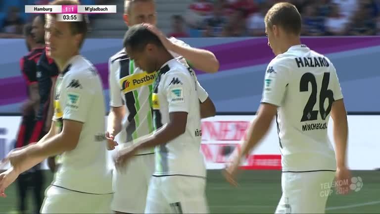 Telekom Cup 2014: Hamburger SV vs. Borussia Mönchengladbach. Raffeal erzielt den Ausgleichstreffer zum 1:1 für Gladbach.