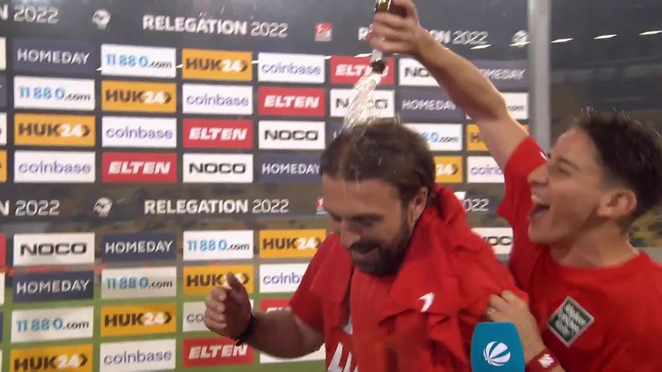 Jubel-Ekstase: Hengen bekommt eine Bierdusche