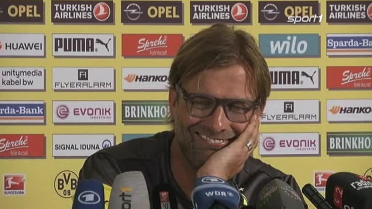 Drei Wochen vor Bundesligastart präsentiert sich BVB-Coach Jürgen Klopp schon mit bester Laune und treibt seine üblichen Spielchen mit der Presseschar.