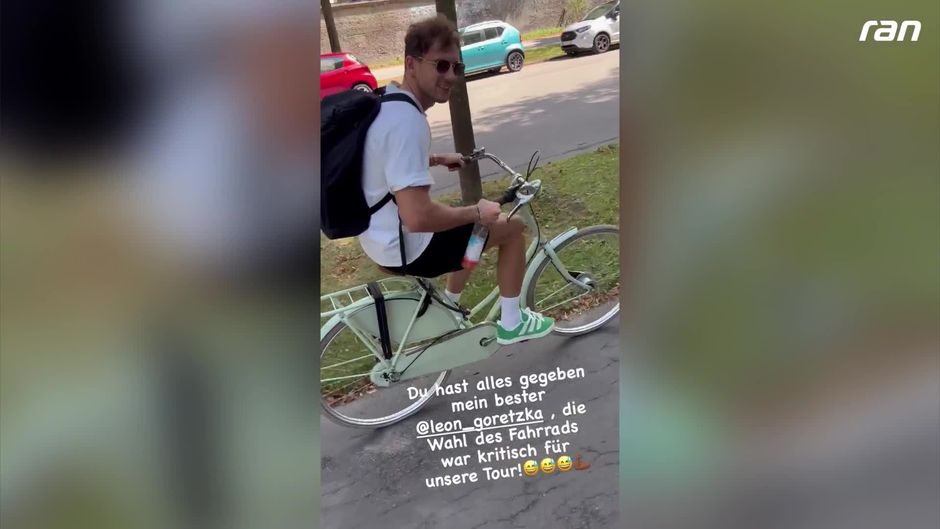 Lustige Szene: Goretzka kämpft mit Hollandrad