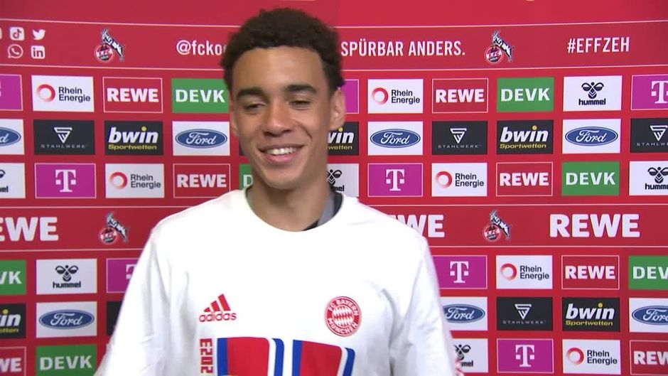 Jamal Musiala spricht über seinen Last-Minute-Treffer gegen Köln.