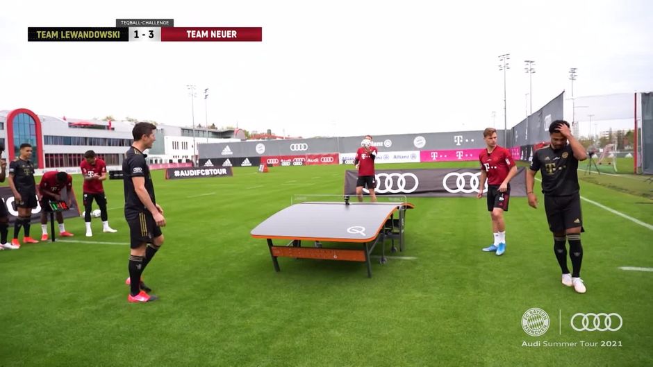 Der FC Bayern steckt in den Vorbereitungen zur neuen Saison, doch Zeit für Spaß ist bei den Münchnern trotzdem: Die Teqball-Challenge mi Manuel Neuer, Robert Lewandowski und Co.