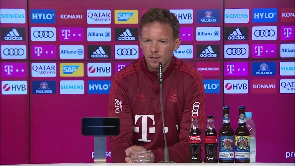 Der FC Bayern München trifft am Samstagabend im Spitzenspiel auf Borussia Dortmund. Der Rekordmeister kann mit einem Sieg vorzeitig die Meisterschaft klar machen. Julian Nagelsmann spricht auf der PK vor dem Spiel über die Euphorie auf den Titel.