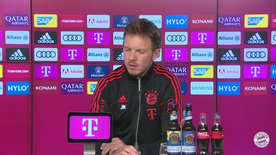Auf einer Pressekonferenz gibt FCB-Trainer Julian Nagelsmann ein Update zu seinen verletzten Spielern.
