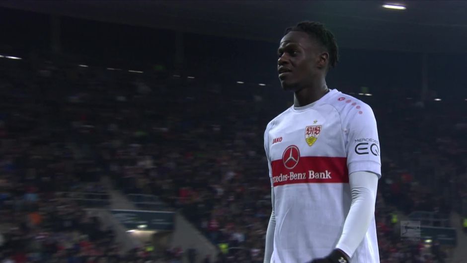 Der Stuttgarter Naouirou Ahamada muss mit Gelb-Rot vom Feld, weil er nach einem Tor zu ausgiebig mit den Fans jubelt. Da es sich um eine Pflichtverwarnung handelt, bleibt dem Schiedsrichter keine Wahl.